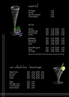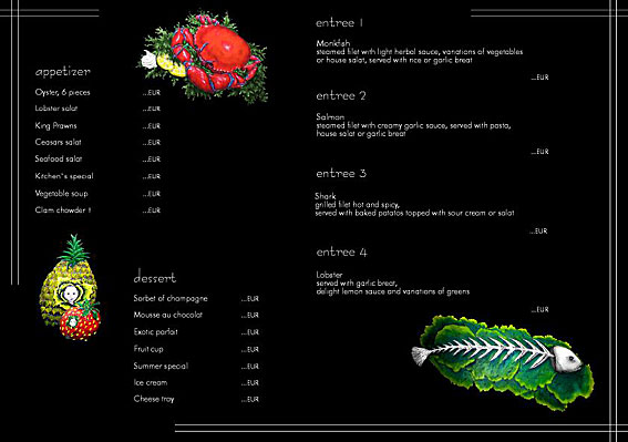 photoshop ; Speisekarte, DIN A4 gefalztt, gestanzt |